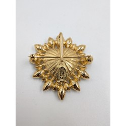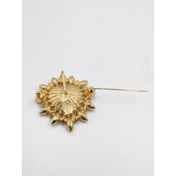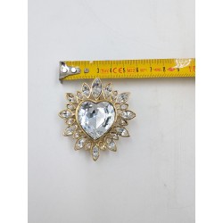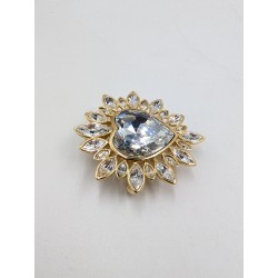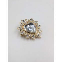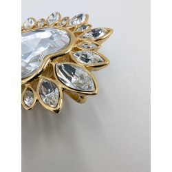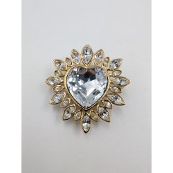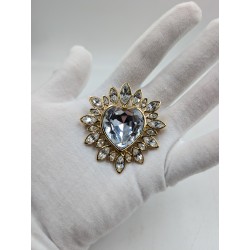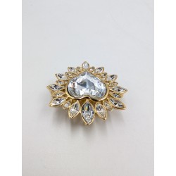 La monture en métal doré met en valeur la transparence et la brillance des cristaux, créant un effet lumineux et sophistiqué. Avec ses dimensions généreuses de 6 cm de hauteur pour 5,5 cm de largeur, cette broche offre une présence remarquable, idéale pour sublimer un manteau, une veste ou une tenue habillée.
