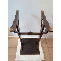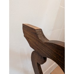 Le piètement ajouré à montants galbés et traverse centrale sculptée est typique des productions de l’atelier Gallé autour de 1900. La construction est traditionnelle, sans clous ni vis apparents, avec un dessous en bois massif ancien.